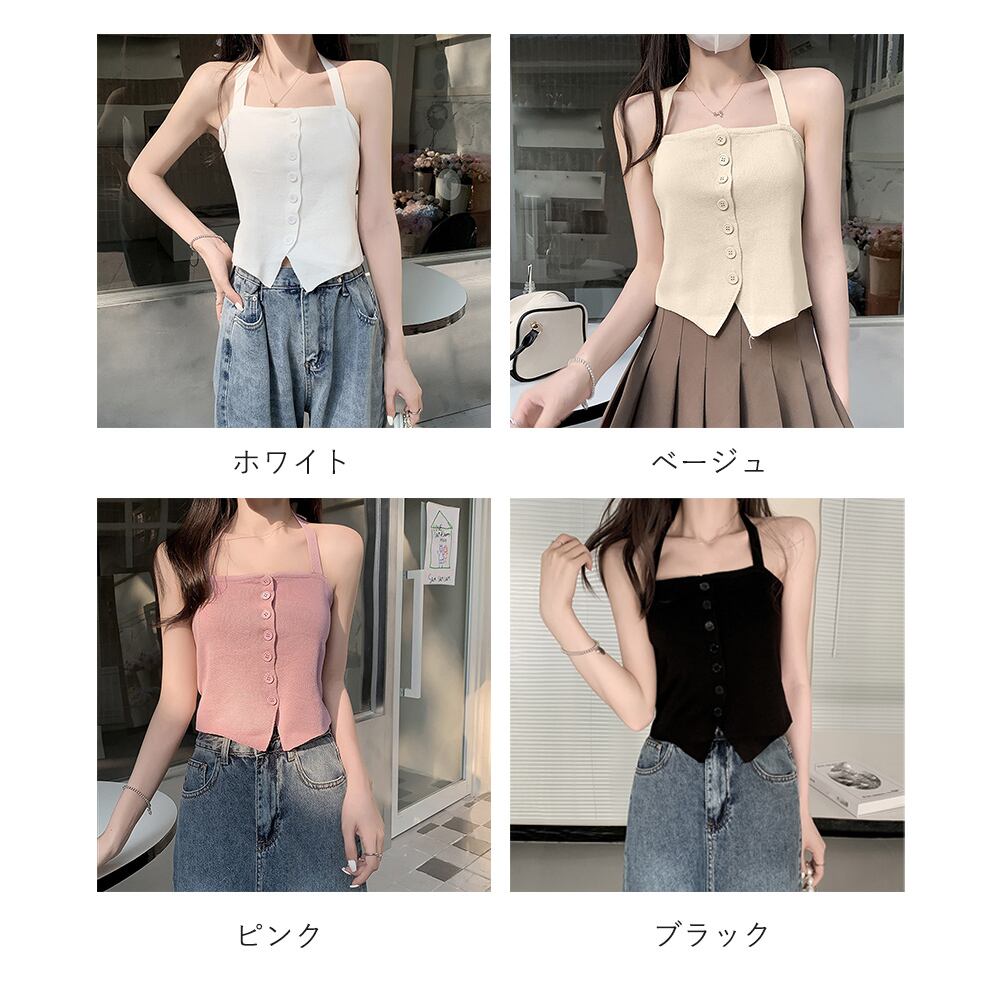 夏の装いを彩るアイテムとして、このホルターネック キャミソール ニットがおすすめです。涼しく着こなしつつも、トレンド感をしっかりと押さえたスタイルを楽しんでください。
