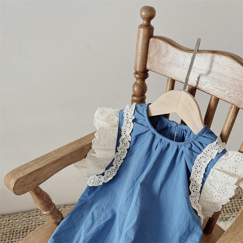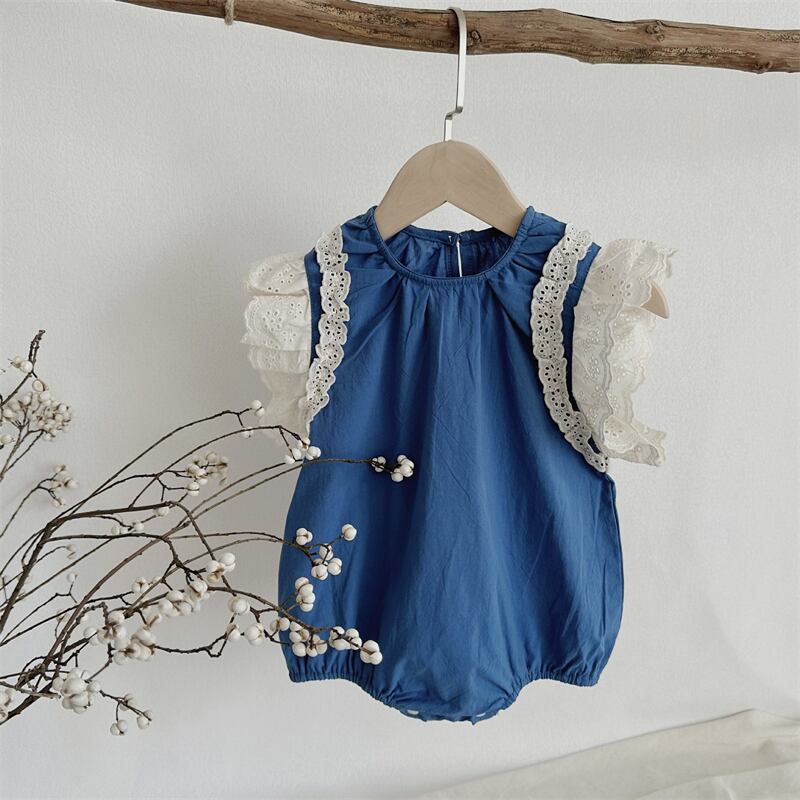 夏にぴったりな可愛いベビー服が新登場!レースとフラッタースリーブが特長のロンパースは、女の子の可愛らしさを引き立ててくれます。愛らしいデザインながらも、快適な着心地と動きやすさにもこだわっています。