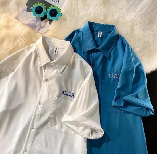春夏新作 メンズ 男 トップス 半袖 刺繍 シャツ ブラウス コート アウター 3色 M-2XL