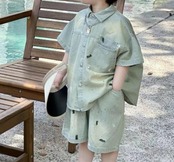 おしゃれなデザインの半袖シャツとショートパンツのセット。男の子にぴったりのカジュアルな着こなし。