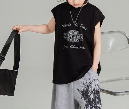 この春夏新作の子供服は、暑い季節にぴったりの袖なしタンクトップです。男の子用のスタイリッシュでカジュアルなデザインが特徴で、軽くて涼しい着心地が子供たちに大好評です。インナーとしても外出着としても活躍すること間違いなし!お子様の夏のおしゃれを格上げしてくれるこちらのトップスは、着回し力も抜群です。