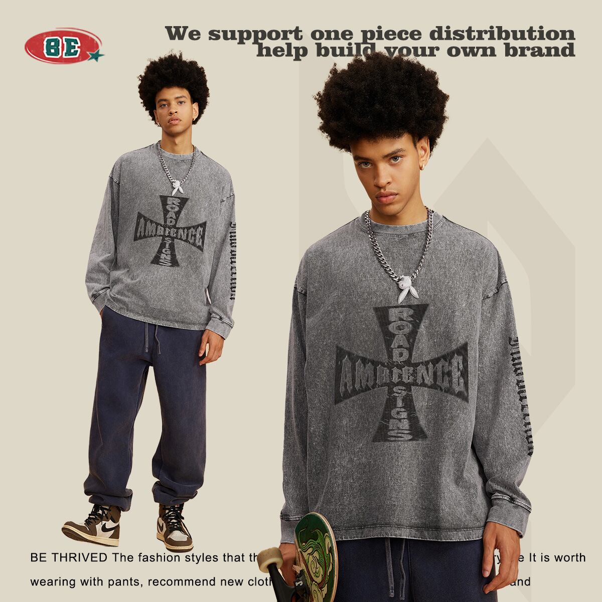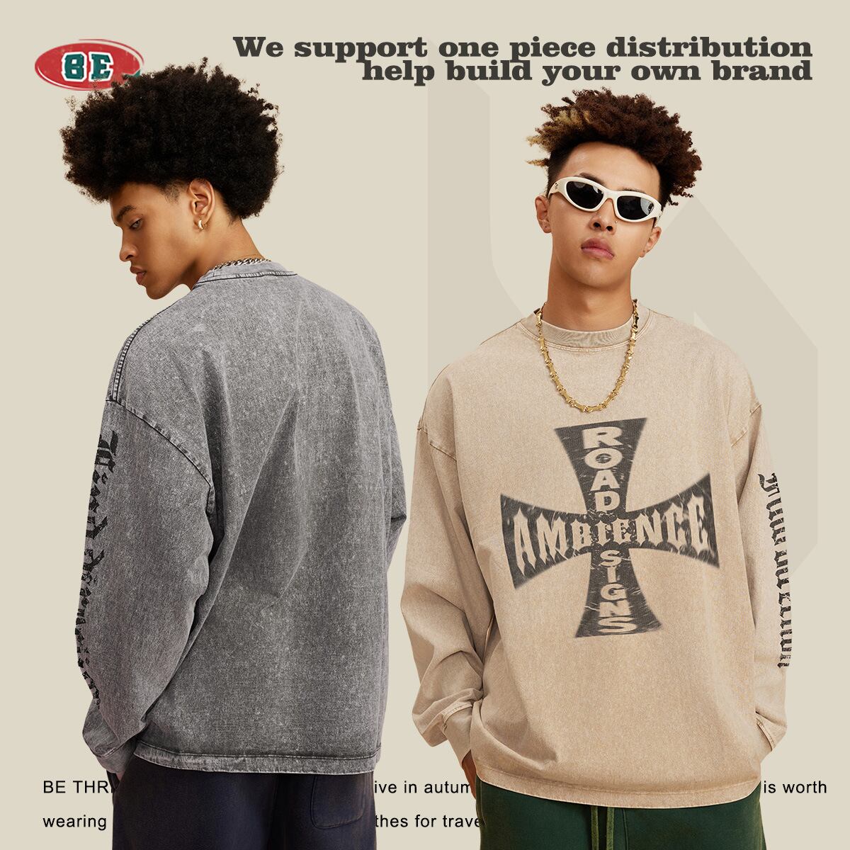 メンズ 秋冬新作 Tシャツ ラウンドネック トッブス 長袖 プリント 快適な着心地