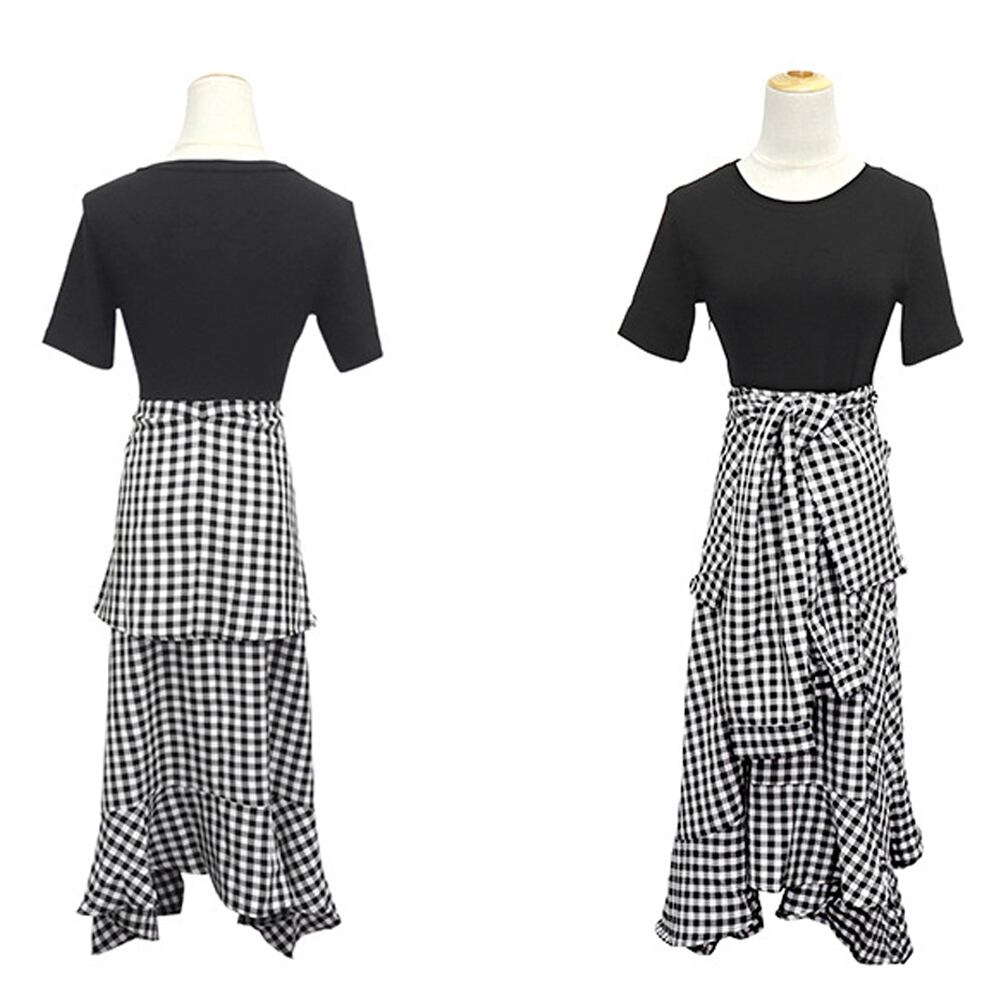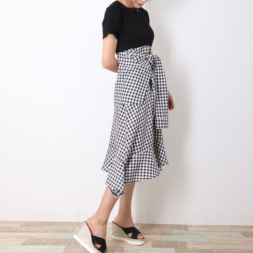 切り替えワンピース 春夏 レディース ギンガムチェック ドッキングワンピ