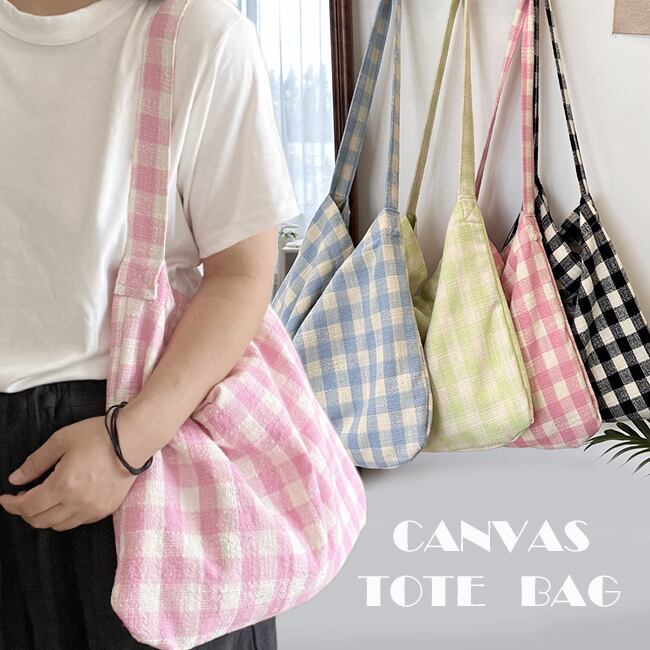 レディース ショルダーバッグ トートバッグ 肩掛け 帆布 キャンバス チェック柄 丈夫 内ポケット