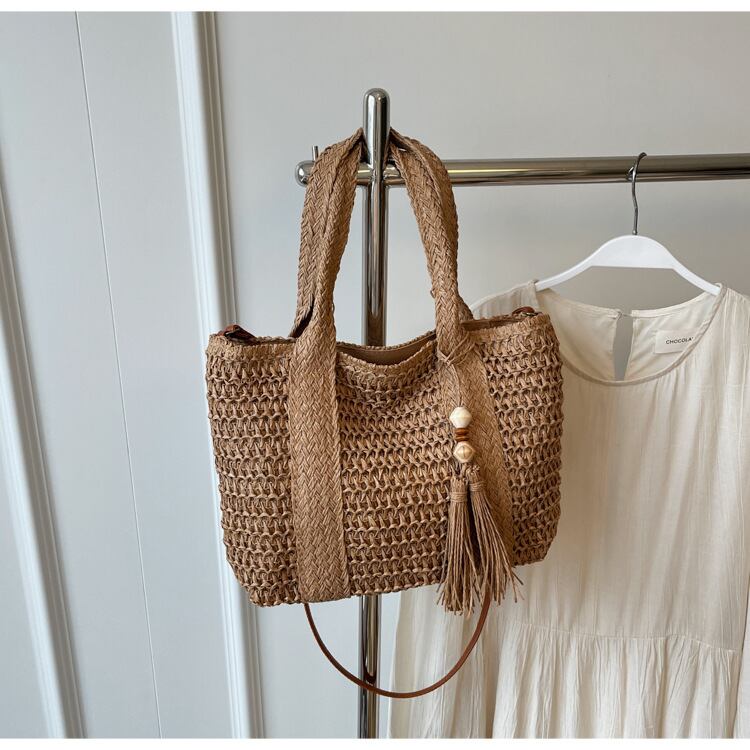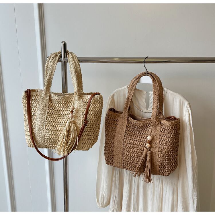 頑丈な作りながらも軽量で、長時間の外出でもストレスを感じさせません。しっかりとした持ち手と肩に優しいショルダー部分が、快適に持ち運べるポイントです。このハンドバッグを持つことで、あなたの夏のおしゃれを一層引き立てることができるでしょう。