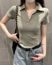 春夏新作 レディース★半袖 無地 ポロシャツ★シンプルで使いやすいインナー